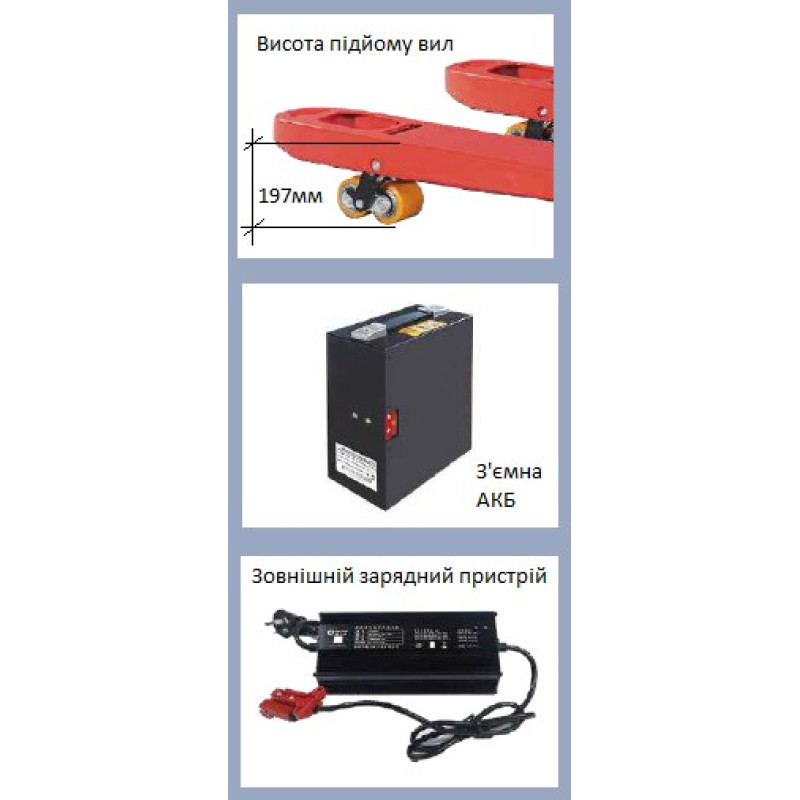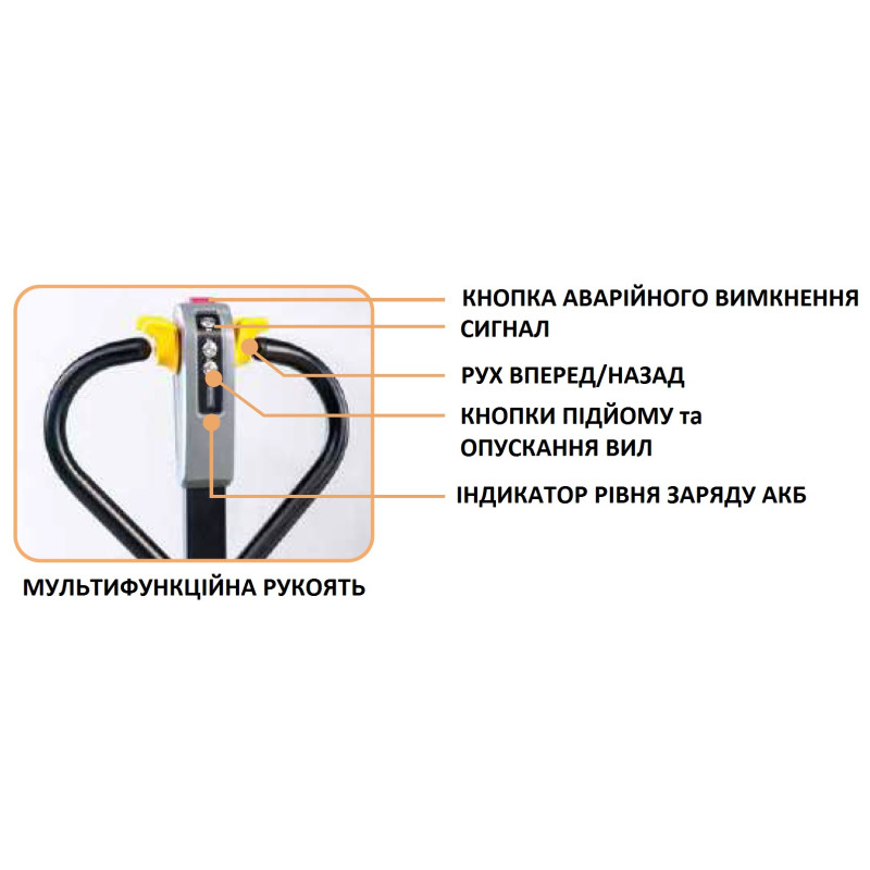 Візок електричний самохідний - палетний візок простий, розумний, надійний і простий в експлуатації. Корпус компактний, невеликий радіус повороту і мала вага, можна використовувати в контейнерах. Низький рівень шуму, продуктивність може забезпечити комфортну роботу. З функцією Power-O Brake ручка відпускається або притискається донизу, і візок негайно гальмує. Ця функція особливо практична, коли візок некерований або на схилі, що безпечніше та надійніше. Оснащений аварійним вимикачем, коли візок знаходиться в небезпечному стані, натискання вимикача аварійної зупинки може припинити подачу електроенергії, і візок зупиняється негайно та захищає оператора та обладнання складу. Гальмівна система включає рекуперативне гальмування руху та електромагнитний стоянковий гальмо, усі засоби захисту можуть забезпечити безпеку оператора. Безщітковий привідний двигун, не потребує обслуговування.